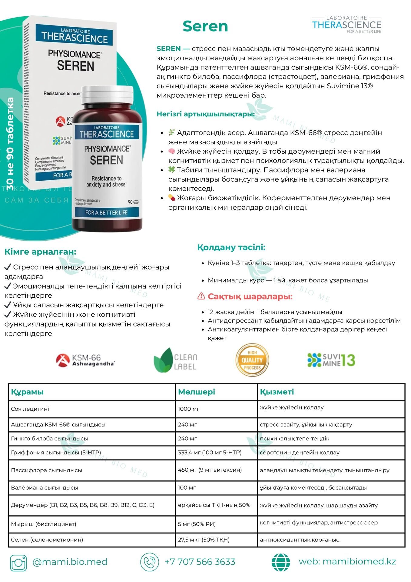 🌿💆 Формула для эмоционального равновесия и устойчивости к стрессу. Ашваганда KSM-66®, гинкго билоба, пассифлора, валериана, гриффония + комплекс Suvimine 13® (11 витаминов и 2 микроэлемента). Поддержка психики, снижение тревожности, улучшение сна и восстановление энергии. Разработано доктором Жаком Басье. Clean Label, произведено в Европе.